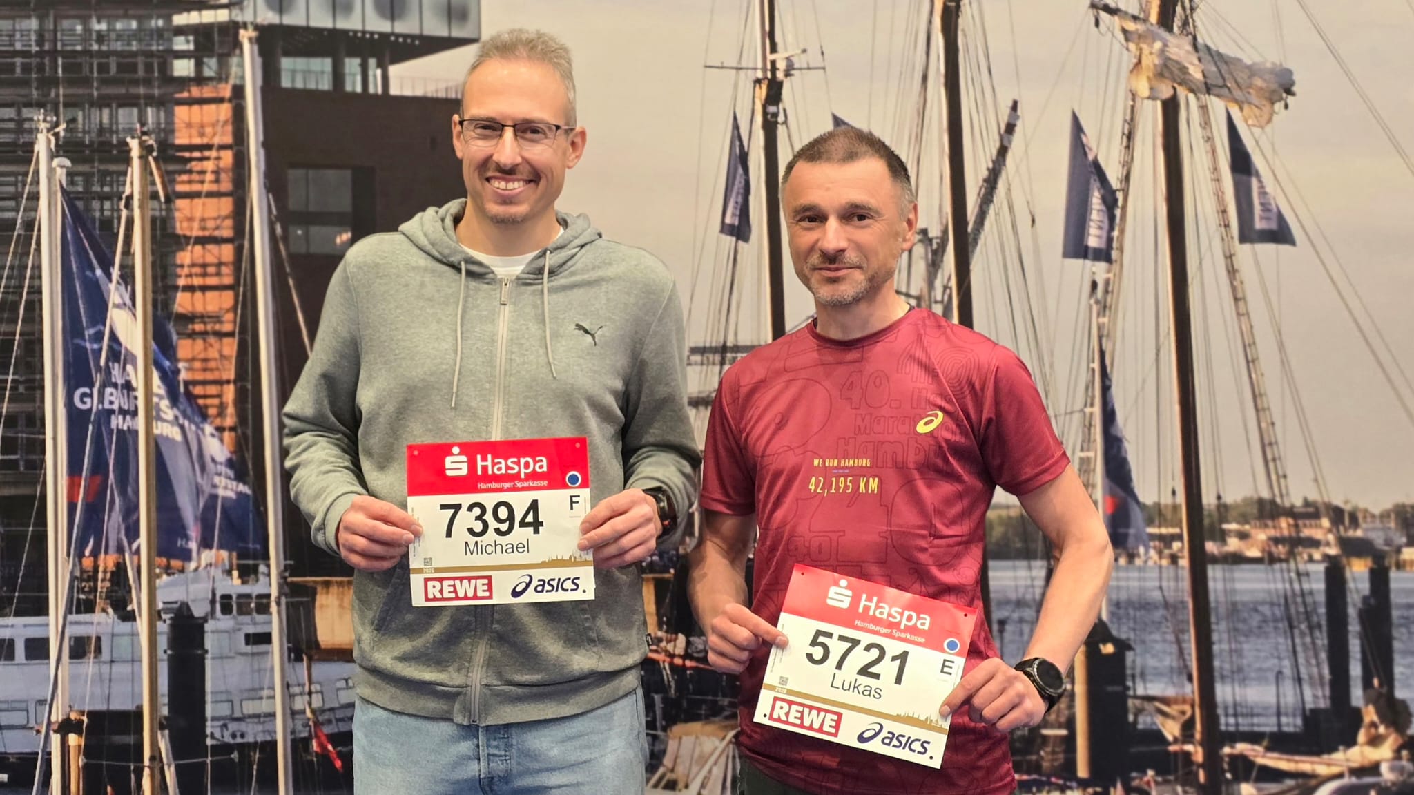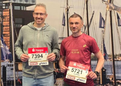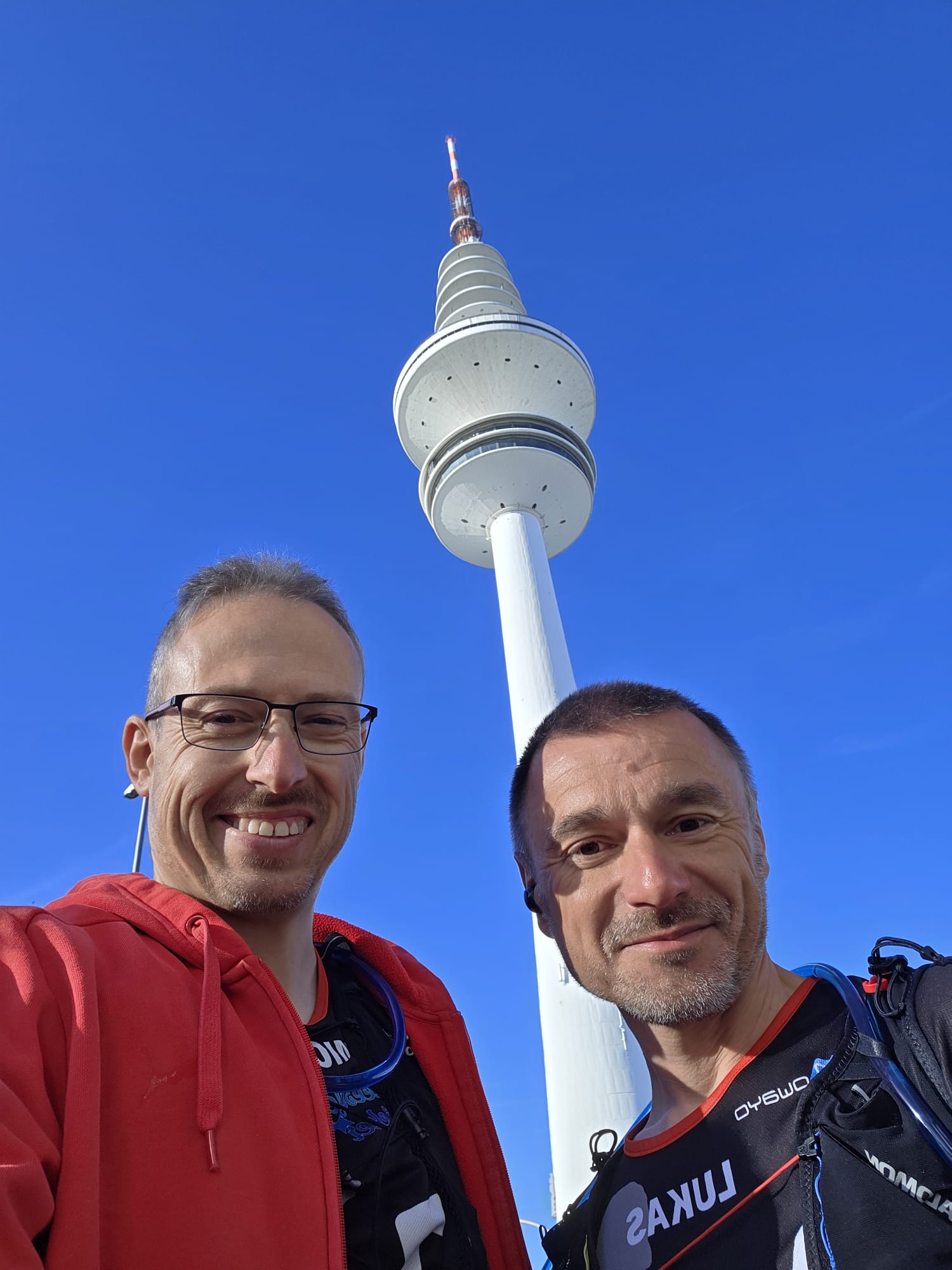 Heute standen für uns zwei große Wettkämpfe auf dem Programmzettel! Im hohen Norden traten zunächst Lukas Juretzko und Michael Kirsten gemeinsam mit weiteren 20.000 Läuferinnen und Läufern bei der Jubiläumsausgabe des Haspa Marathon Hamburg über die Volldistanz an. Auf dem Rundkurs durch die Hansestadt hatte Lukas aus dem Vorjahr noch eine Rechnung offen. Er finishte bei bestem Wetter mit starken 3:33:35h, was für ihn eine neue persönliche Bestzeit bedeutete. Knapp dahinter blieb Michael Kirsten mit ebenfalls sehr sehenswerten 3:40:21h.