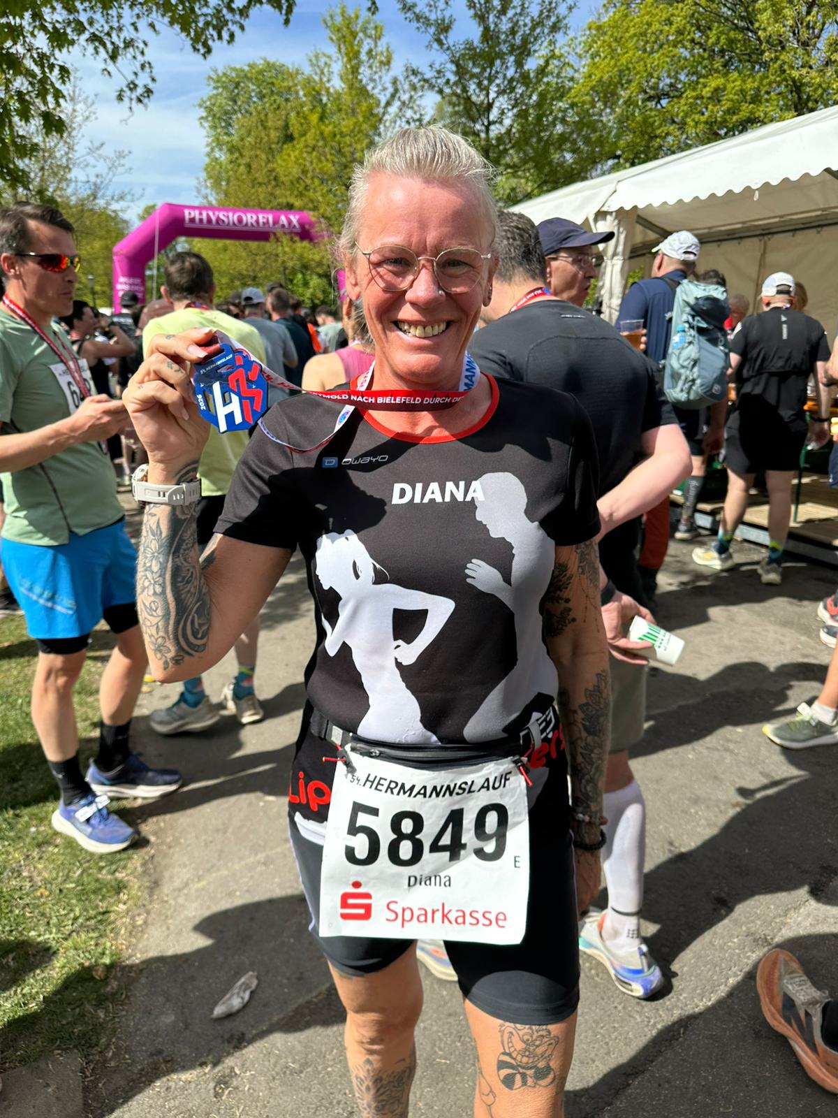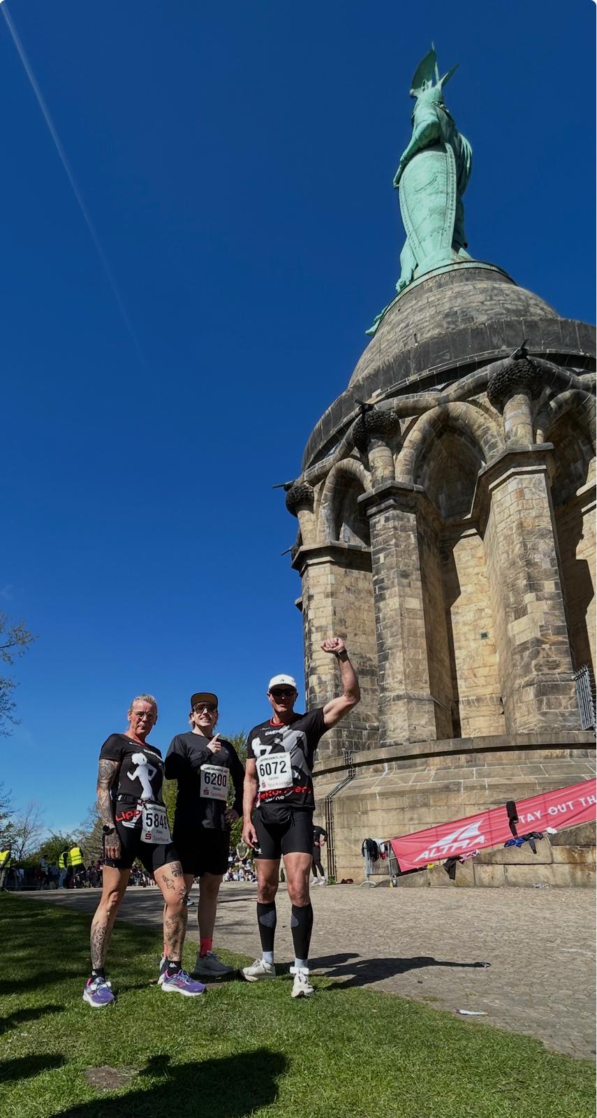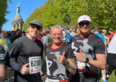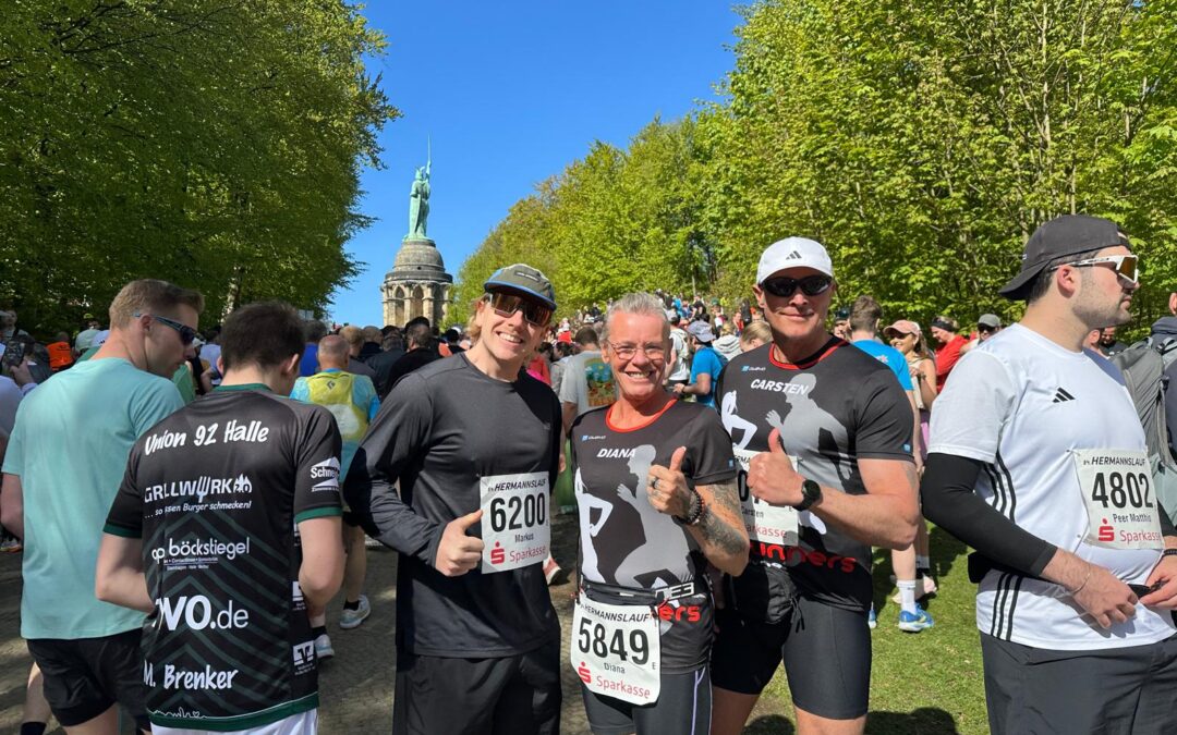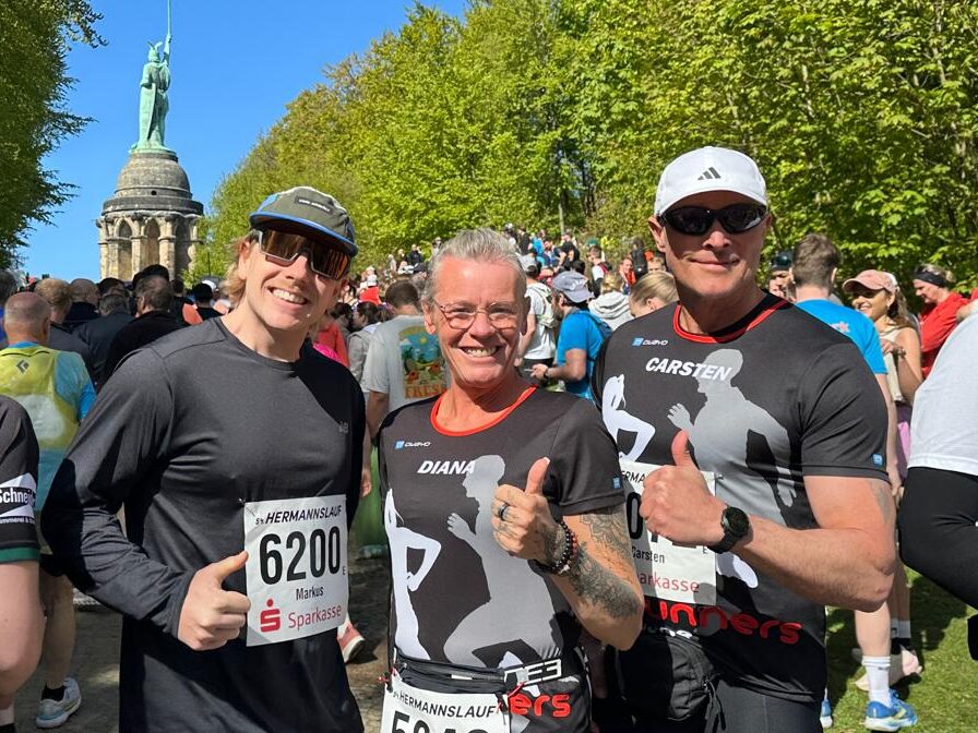 Parallel hierzu starteten am frühen Morgen drei LippeRunner am Fuße des Hermannsdenkmals bei der 54. Auflage des Hermannslaufs. Insgesamt 30km und 568 Höhenmeter durch den Teutoburger Wald bis zur Sparrenburg in Bielefeld galt es für die 8.000 Läuferinnen und Läufer zu bewältigen. Diana Jücker behielt dabei vereinsintern die Nase vorn und finishte in starken 3:15:22h, relativ dicht gefolgt von Markus Goldstein mit 3:19:45h. Das Trio komplett machte Carsten Willfroth in guten 3:39:16h.