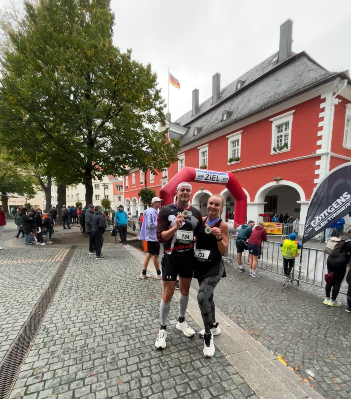 Der erwartete große Regenguss blieb zum Glück aus und neben mehreren kleineren Schauern zeigte sich zwischenzeitlich auch die Sonne, um unsere Starter noch einmal anzuspornen. Schnellste LippeRunnerin war Sandra Pehle, die mit 1:58:39h eine neue persönliche Bestzeit erzielte. Knapp dahinter blieb Ines Riefenstahl mit ebenfalls starken 1:59:58h. Auch Simona Pielmeier braucht sich hinter ihrer Zeit nicht zu verstecken, 2:08:23h stand für sie am Ende auf der Uhr. Lena Schmidt fungierte bei ihrem siebten HM als Laufbegleitung für die HM-Premiere ihres Freundes; beide kamen nach 2:18:02 durch den Zielbogen gelaufen. Auch Marcus Voss kam als erfahrener Begleiter zum Einsatz und lief mit seiner Schwägerin nach guten 2:24:10h über die Ziellinie.