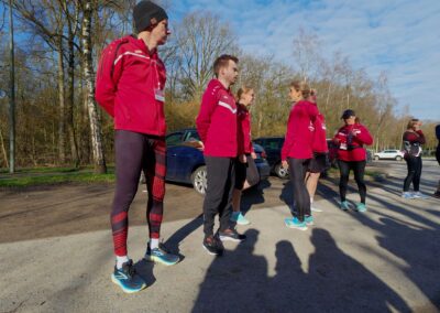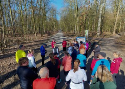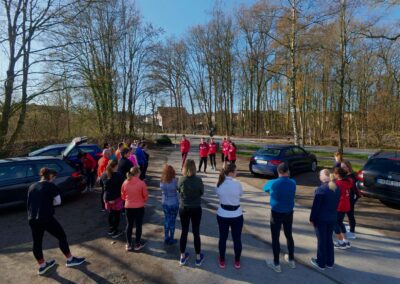 Zunächst gab es eine kleine Stretching-Einheit mit verschiedenen Übungen, bevor es dann für eine erste Runde in den Stadtwald ging. Insgesamt 9 Jogging-Einheiten über eine Minute wechselten sich dabei mit genauso langen Gehpausen ab. Zum Abschluss des Training versammelten wir uns wieder im Kreis, um gemeinsam verschiedene Dehnübungen durchzuführen.