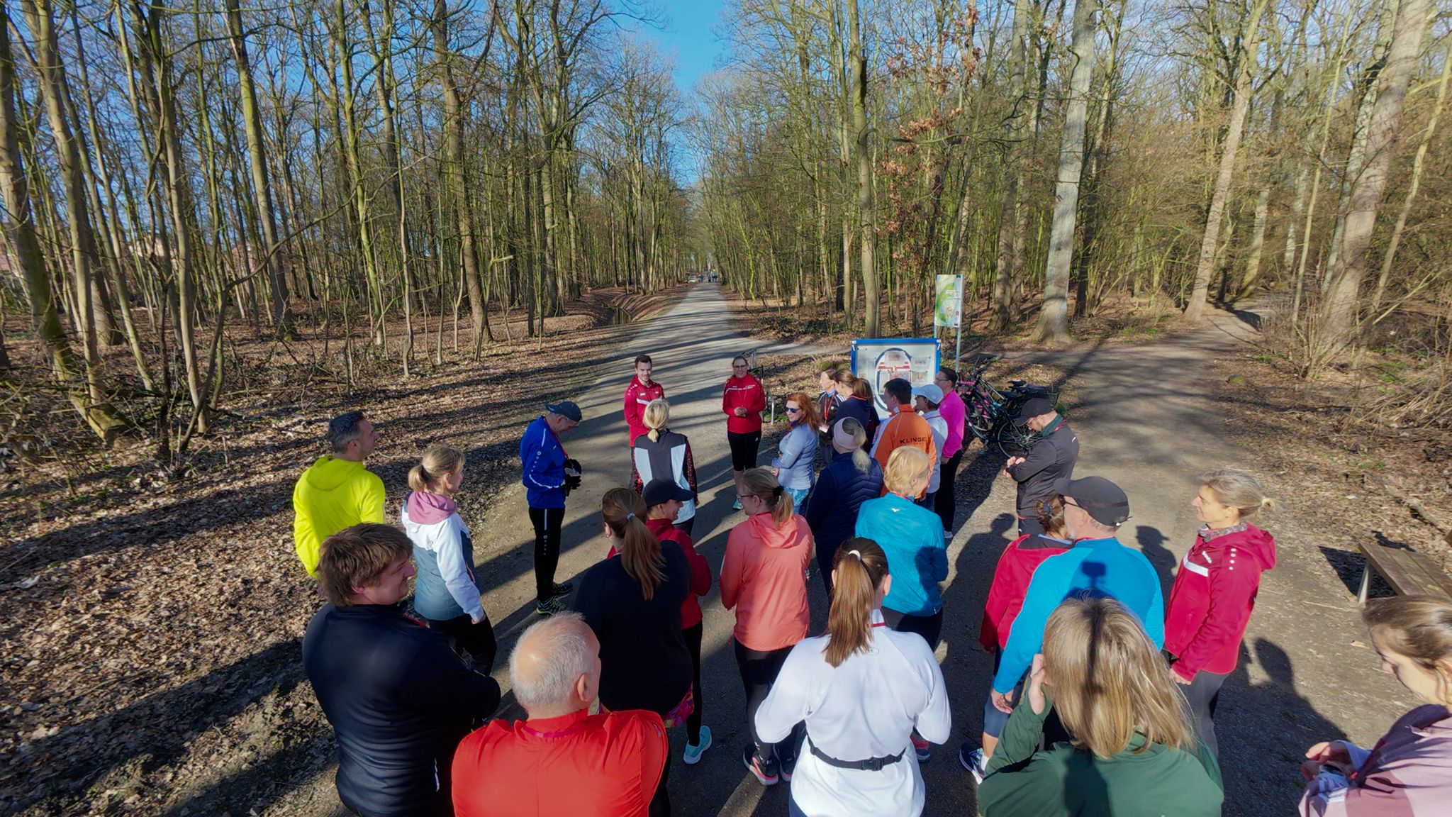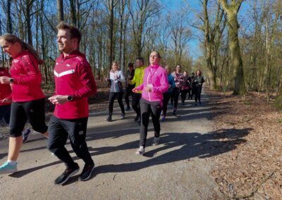 Heute sind wir mit 24 motivierten Läuferinnen und Läufern sowie 7 Betreuerinnen und Betreuern in unseren Laufkurs zum Erfolg gestartet. Bei sonnigem Wetter fanden wir uns auf dem Parkplatz vor dem Eingang zum Stadtwald in Werne ein. Nach einer kurzen Vorstellung unseres Kursprogramms sowie der Betreuerinnen und Betreuer wurden die Anmeldeformulare verteilt und im Anschluss direkt mit dem Programm begonnen.