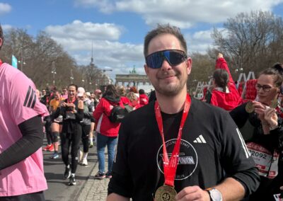 Am Sonntag war dann noch eines unserer neuesten Mitglieder in der Hauptstadt unterwegs. Daniel Spiegelhauer startete zusammen mit 40.000 anderen Läuferinnen und Läufern beim Berliner Halbmarathon und beendete seine Wettkampfpremiere auf dieser Distanz in soliden 2:20:42h.